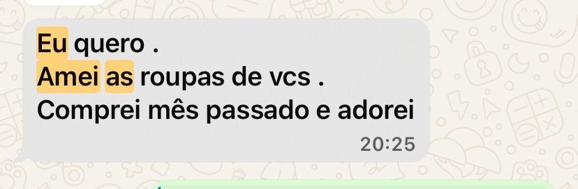Eu quero.Amei as roupas de vcs.Comprei mês passado e adorei