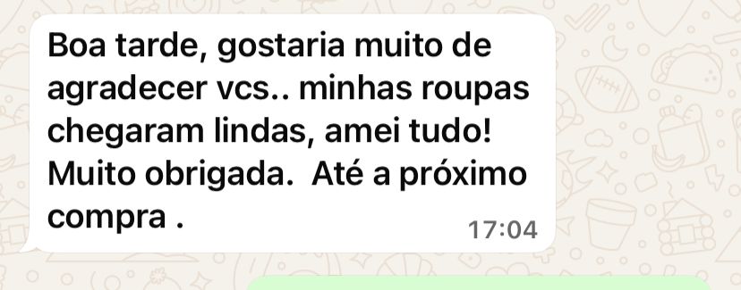 Boa tarde,gostaria muito de agradecer vcs..minhas roupas chegaram lindas, amei tudo!